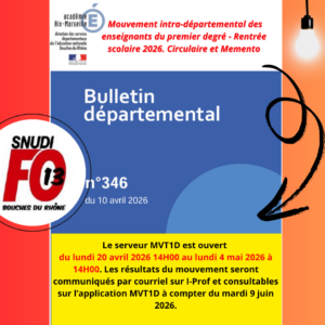 Mouvement intra-départemental des enseignants du premier degré - Rentrée scolaire 2026 _CIRCULAIRE et MEMENTO